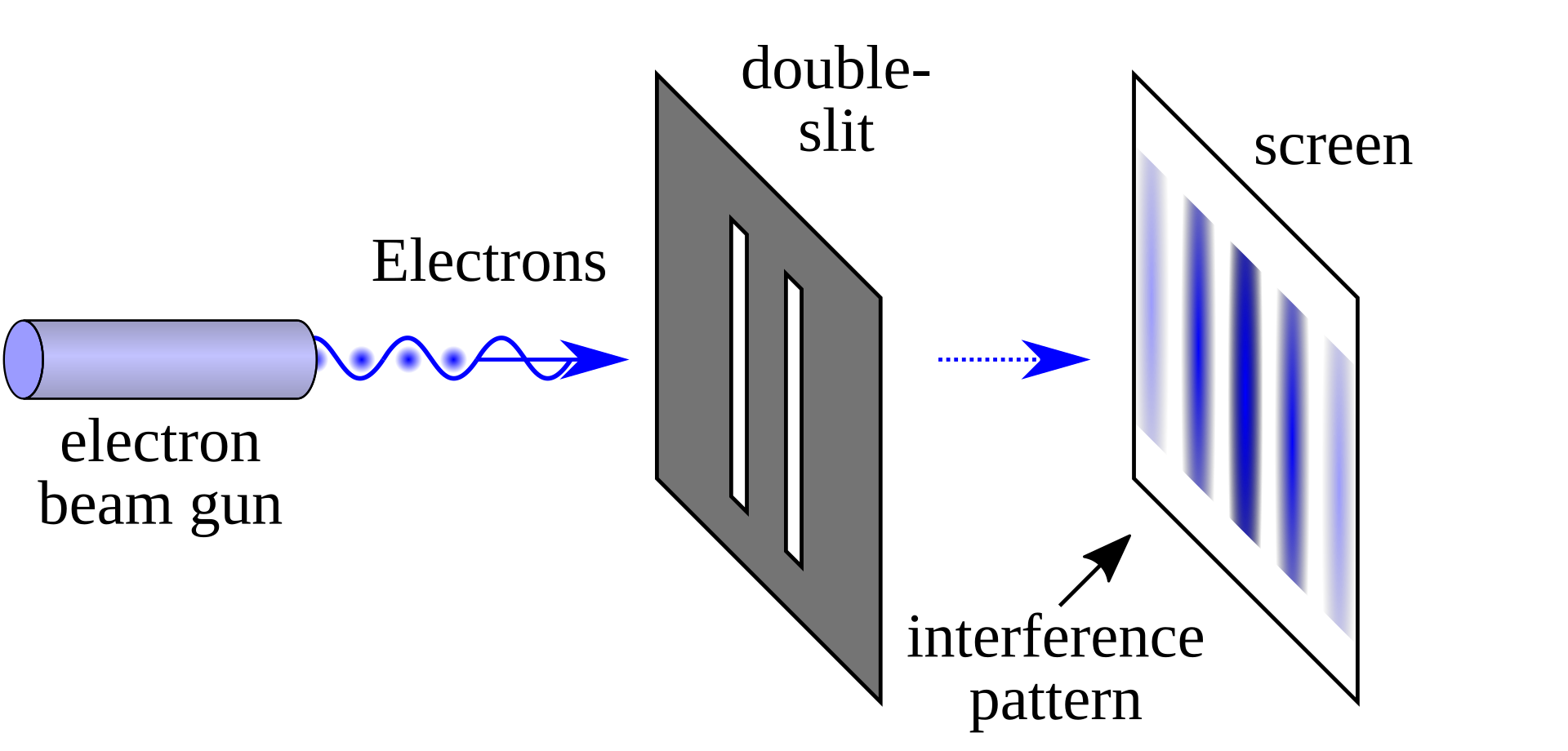 If you put 2 slits in front of a wave, it creates an interference pattern. A particle's probability does that too!